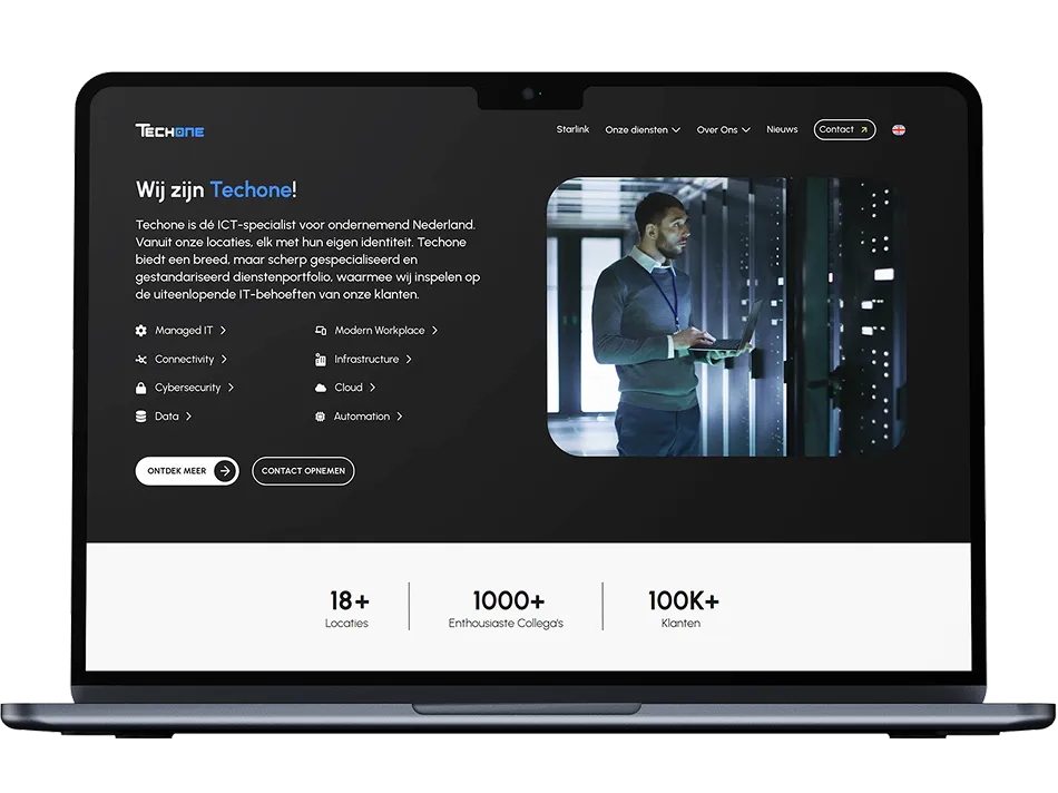 Techone’s old website didn’t clearly communicate what they offered. Visitors struggled to understand their wide range of IT services, and the team wanted a leadership page. The goal was to redesign the homepage hero so the services stood out immediately, create dedicated subpages for each service, and add a leadership page to showcase the team.